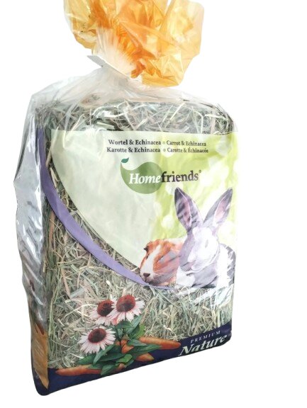 Turbózza fel kedvence immunrendszerét a Homefriends sárgarépás és kasvirágos (echinacea) szénájával! A ropogós sárgarépa darabok természetes béta-karotin forrást biztosítanak, míg az echinacea közismert immunerősítő hatásáról. Ez a rostban gazdag keverék segít a szervezet ellenállóképességének növelésében, különösen az évszakváltások idején, miközben a rágás élménye gondoskodik a fogak egészséges kopásáról.